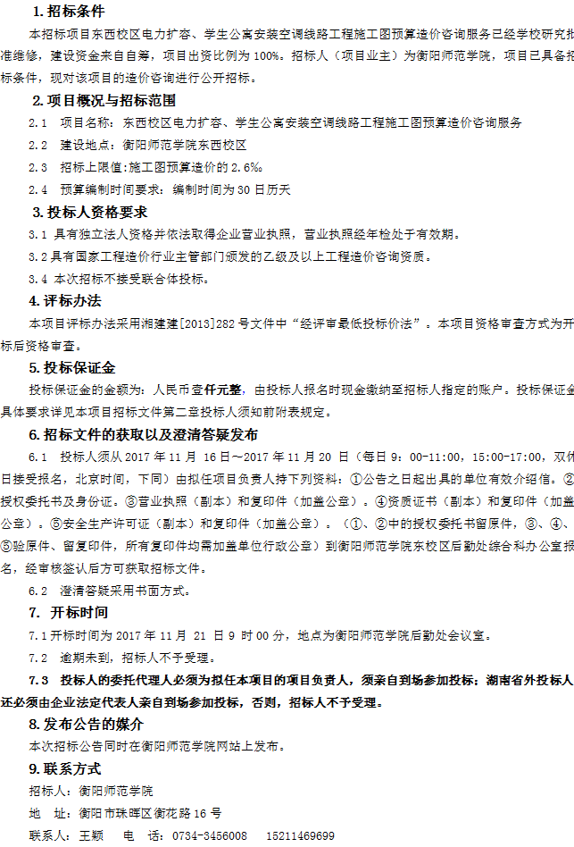 东西校区电力扩容、学生公寓安装空调线路工程施工图预算造价咨询服务招标公告