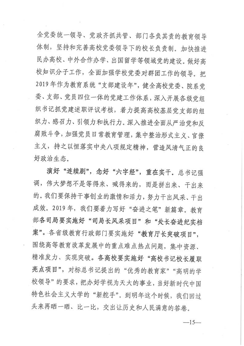 教育部陈宝生部长在全国高等教育工作会议上的讲话
